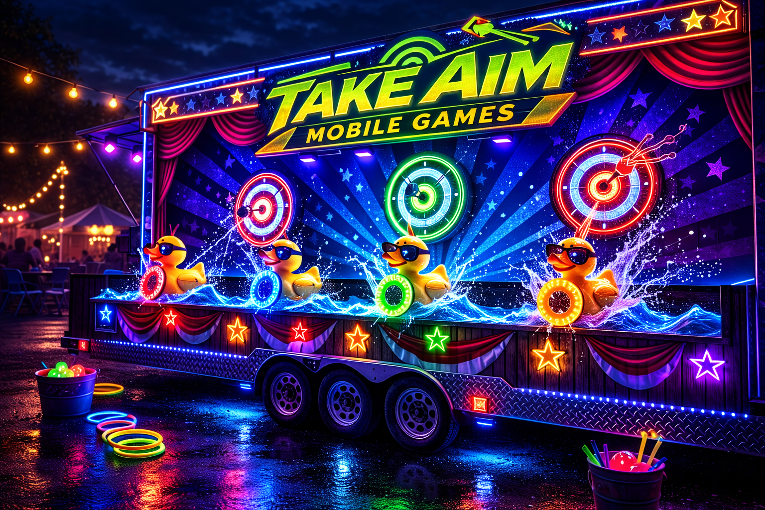 Take Aim Mobile Games brings the party to your doorstep perfect for any backyard or event space.